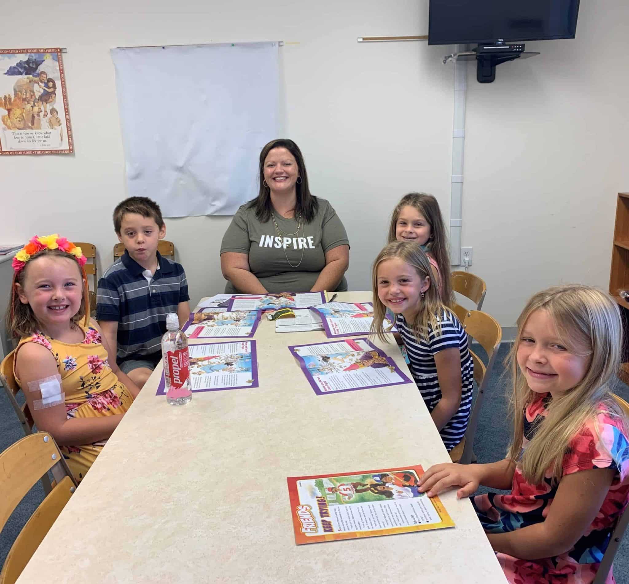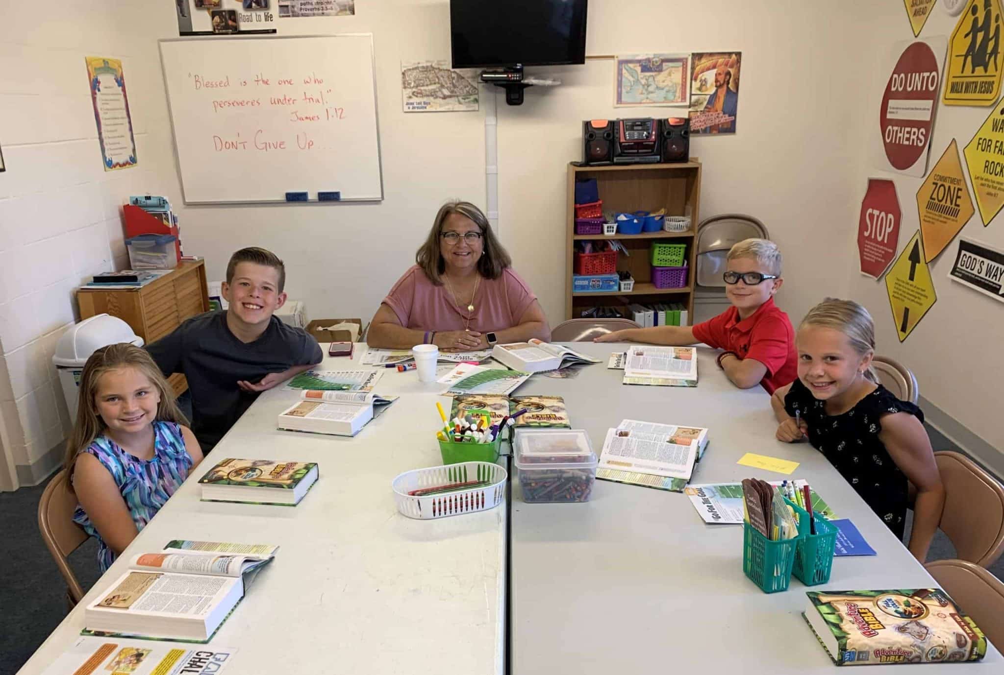 Grades 9-12, taught by Kris and Dyan Ingram, meet on the upper level, on the left down the main hall.